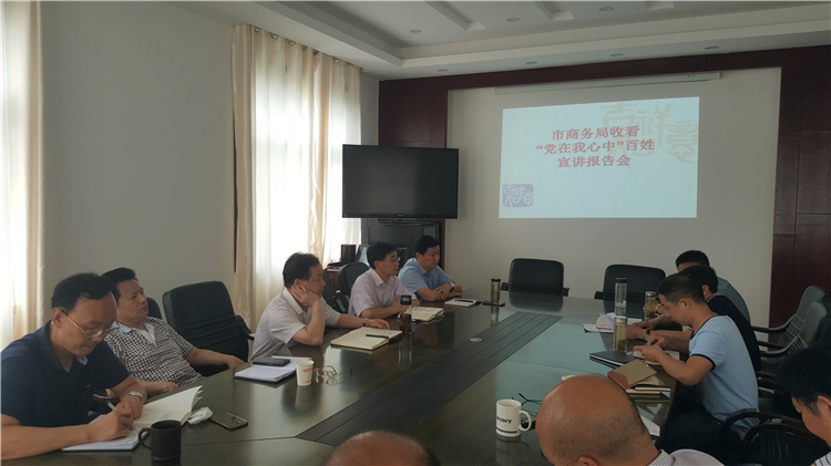 7月4日下午,市商务局组织机关全体党员干部收听收看党在我心中百姓宣讲报告会。